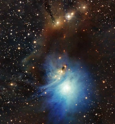 Last month we featured an HD star in Chamaeleon, and here's another one! This time we have an intermediate-mass young star in the Chamaeleon I star forming complex. It is a B9V star which is transitioning from Herbig Ae/Be type to a zero-age main sequence star. The star is illuminating the IC 2631 reflection nebula, also known as Cederblad 112. HD 97300 is an 0.8 arcsecond binary, where the lower-mass companion is about 3 magnitudes fainter at K, and thus likely a T Tauri star. HD 97300's identity as a HAeBe star indicates that it will become a higher-mass star, at least 2½ times more massive than the Sun, though it was previously thought to be a T Tauri object of solar-type mass.