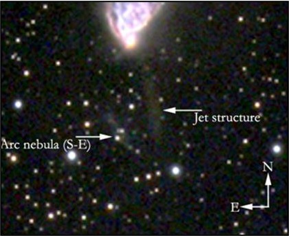 The stimulus for the study was a set of images by J.G. Moreau from 2009 and 2019, which showed the disappearance of the jet-like nebula in the southern component of the main nebula, which justified the larger, more intense follow-up in the hope of observing the evolution of this region. As can be seen here, there are two structures South of NGC 2261:- an arc-like nebulosity and the jet. While the arc-nebula did not seem to vary in intensity the jet did; and in fact the study used the arc as a 'comparison star' for the jet! The numerous graphs and figures show how the various features changed over time and included observations in several wavebands including Infra-red.